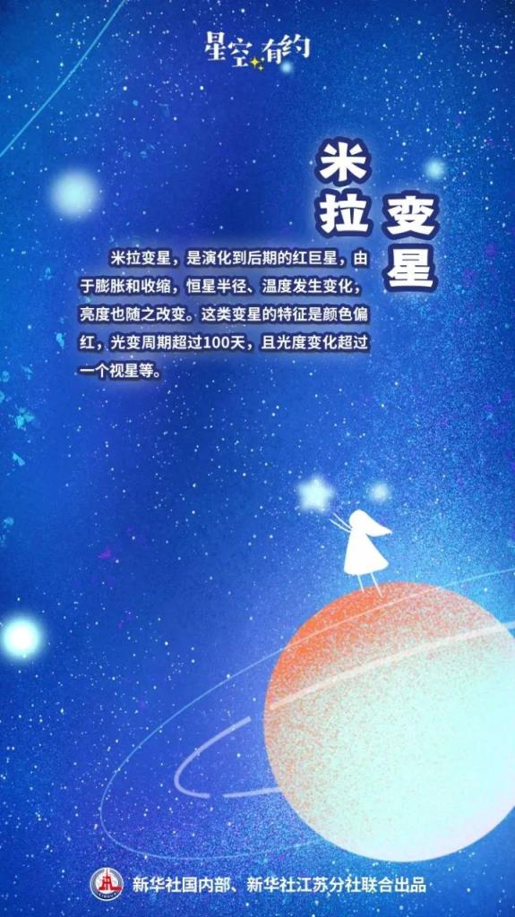 “脉动变星又分为许多类型,如造父变星、米拉变星等。”王科超说,仙后座R星所属的米拉变星,是演化到后期的红巨星,由于扩张和松开,恒星半径、温度发生变化,亮度也随之改革。这类变星的特征是神采偏红,光变周期频频逾越100天,且光度变化逾越一个视星等。